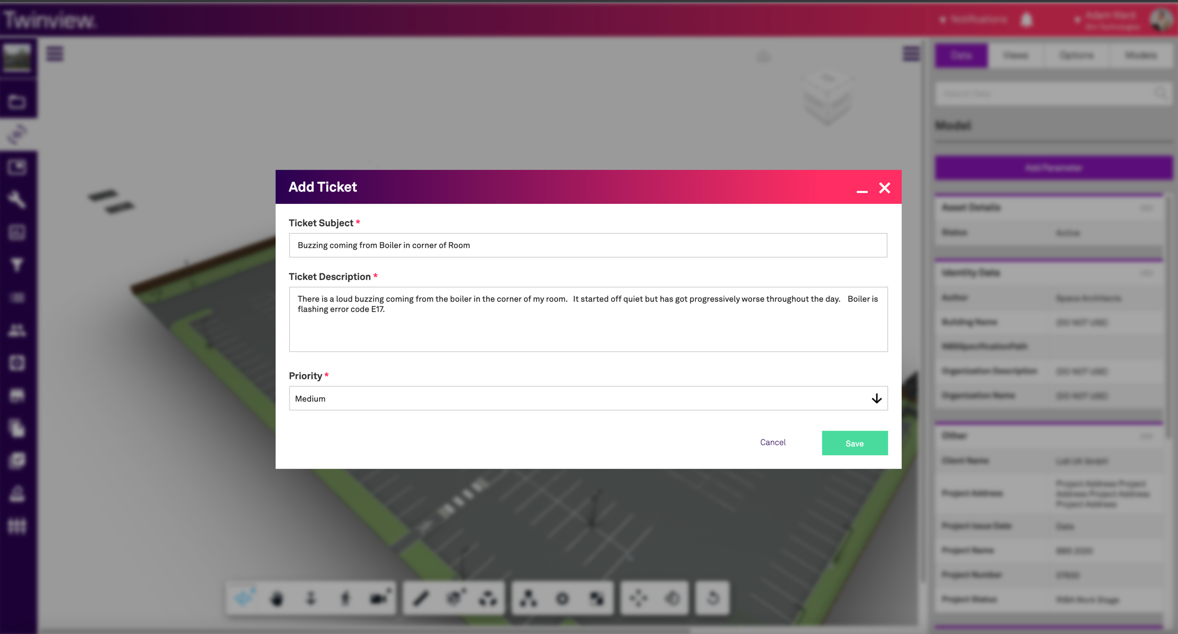 Step 3 - Populate the ticket with information about the issue or problem. Be as descriptive as you and describe the issue in as much detail as possible. You can also select a priority if known, however this will be reviewed and updated by the maintenance operative after they have reviewed the ticket, so your best guess is okay. When done click 'Save'